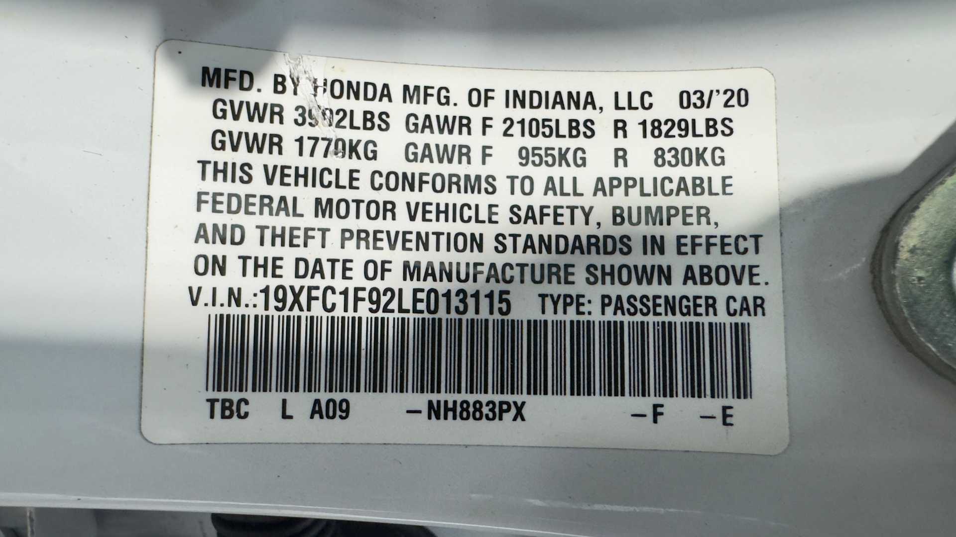 19XFC1F92LE013115